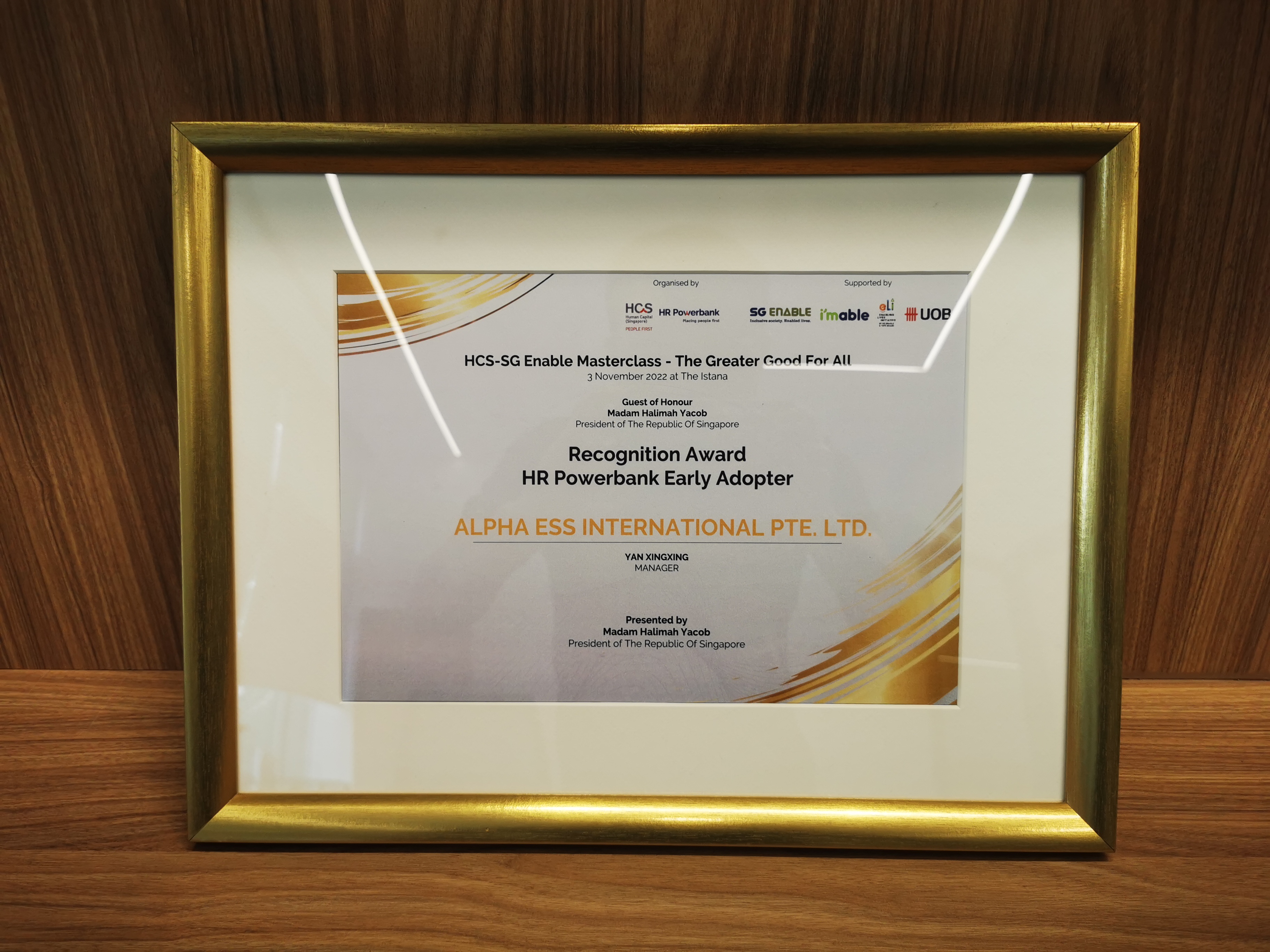 在新加坡总统哈莉玛·雅各布及国会议长陈川仁的支持下,由新加坡协助残障者自立局(SGEnable)和培训机构新加坡人力资本(HCS)共同举办的"人力资源能源银行"(HR PowerBank)计划颁奖活动在新加坡总统府圆满落幕。此次计划旨为帮扶体障者再就业,促进社会和谐发展。J9官网能源通过层层选拔,作为首批入选企业加入其中。